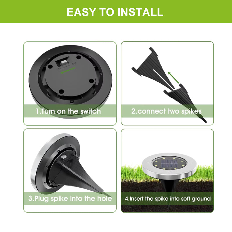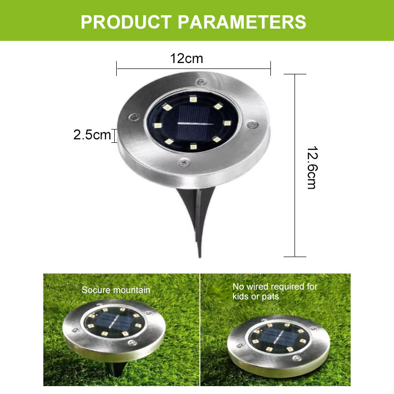 Designed to withstand the elements, our solar lights fear neither rain nor wind, made from high-quality stainless steel, Perfect for your garden, yard, pavement, path, terrace, campsite, etc.